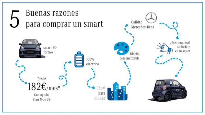 Así es, ¿Sabías que desde hace años smart solo comercializa vehículos eléctricos bajo las siglas de EQ? La gama EQ, reservada a vehículos 100% eléctricos ha permitido a smart ser pionero en cuanto al coche compacto urbano 100% eléctrico.
