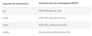 A la hora de adquirir un vehículo nuevo uno de los pagos al que se tiene que hacer frente es al denominado impuesto de matriculación. Este coste que grava el nivel de emisiones estipulado por la Ley de Calidad del aire se incrementa o disminuye en función del consumo y de las emisiones de CO2 de cada vehículo. Así pues, un vehículo con mayor cilindrada tendrá que hacer frente a un pago más costoso que aquél que tenga menor cilindrada.