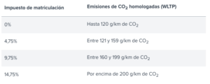 A la hora de adquirir un vehículo nuevo uno de los pagos al que se tiene que hacer frente es al denominado impuesto de matriculación. Este coste que grava el nivel de emisiones estipulado por la Ley de Calidad del aire se incrementa o disminuye en función del consumo y de las emisiones de CO2 de cada vehículo. Así pues, un vehículo con mayor cilindrada tendrá que hacer frente a un pago más costoso que aquél que tenga menor cilindrada.