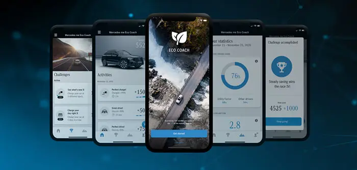Mercedes Me ECO Coach es un asistente o entrenador personal digital, al que se accede mediante el uso de la aplicación de Mercedes Me. Este asistente se encarga de familiarizar a los conductores de los vehículos Mercedes EQ y Mercedes EQ Power con las capacidades eléctricas de sus vehículos.